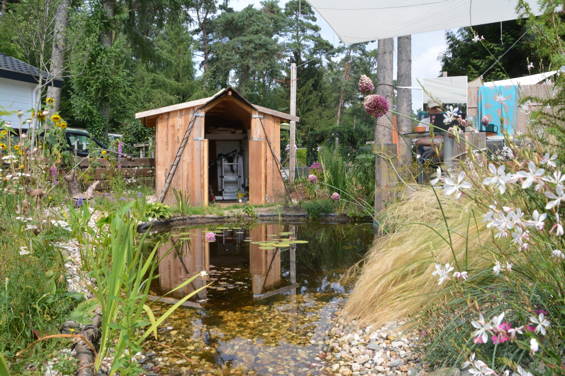 De bewoners van Agrodome kozen voor ecologisch gebouwde huizen, maar hun individuele tuinen waren bescheiden. Door samen te werken, hebben we één grote, gezamenlijke tuin gecreëerd die ruimtelijkheid biedt en toch de eigenheid van elke bewoner weerspiegelt. Met subtiele scheidingen geniet iedereen van privacy én de voordelen van een weelderige, gedeelde groene oase.